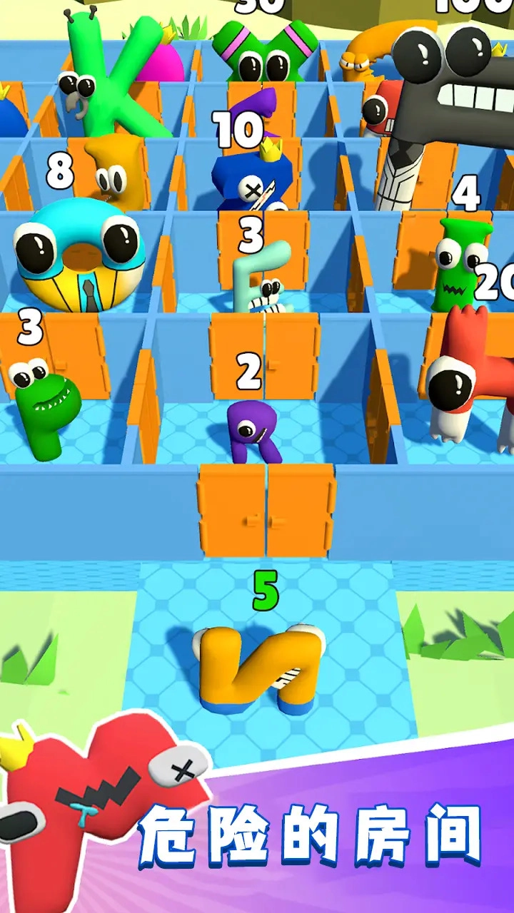 字母表房间迷宫是一款休闲闯关游戏,游戏拥有超大地图供你挑战,还有超多不同的字母怪物等你解锁体验。你需要在游戏中走出迷宫,这非常考验你的操作技术。这款游戏老少皆宜,非常值得一试,喜欢的话就快来体验吧!
