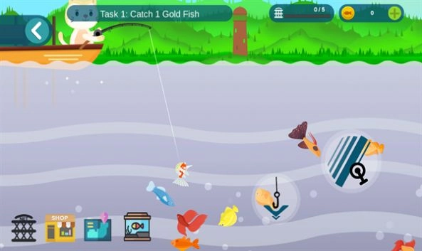 小猫钓鱼模拟器手机版是一款可以坐在船上来进行钓鱼的小游戏,玩家需要根据天气、时间等因素选择不同的鱼饵,并适时调整投放的位置和钓鱼的深度,尽可能多地钓到各种大小鱼类,钓到的鱼可以出售或进食,赚取游戏币或增加玩家的血量。
