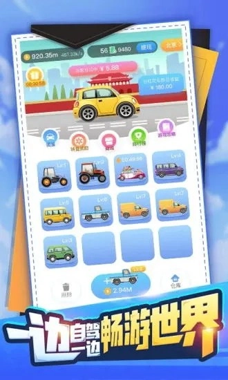 简单的游戏能持续产出金币,汽车等级越高,你获得的收益就越多。