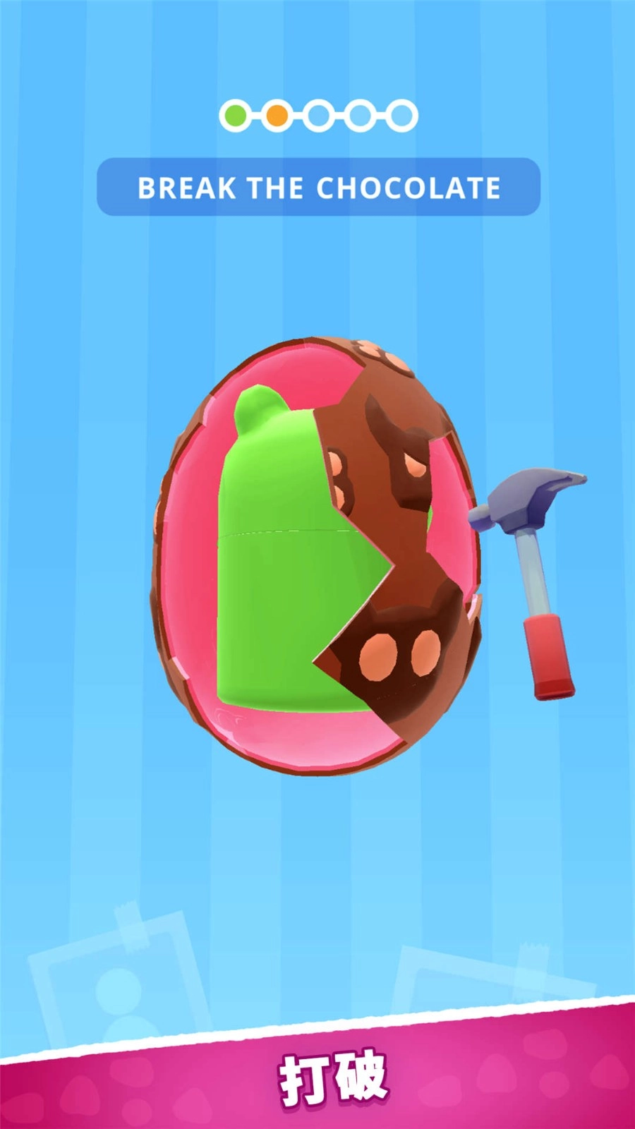 3、在游戏中,玩家能够借助各种道具敲击巧克力蛋,把蛋敲碎后拼凑出玩具。
