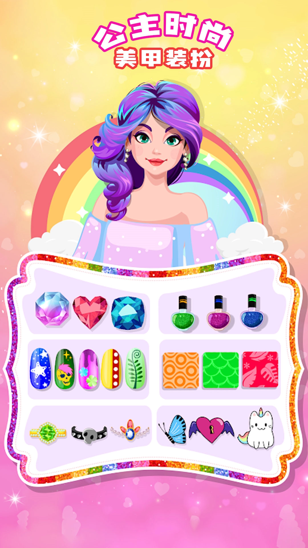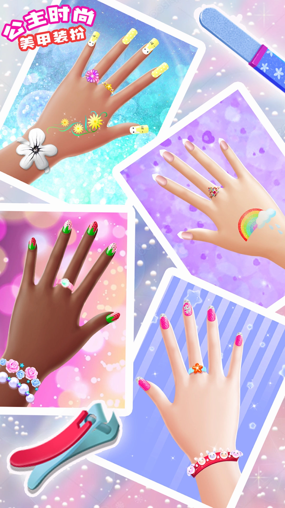 公主时尚美甲装扮游戏是一款有着丰富美甲技巧的装扮游戏,你将有机会尝试不同的美甲款式,包括指甲贴纸、珠宝和立体装饰物等,让公主们拥有与众不同的美丽指尖。同时,你还可以选择漂亮的衣服、配饰和发型来与美甲搭配,打造出完美的时尚形象。