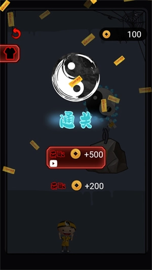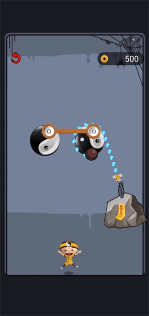 这关非常简单,同样是将干支表牛骨靠近铜币,它就会吸附并带动石头解救小道士。