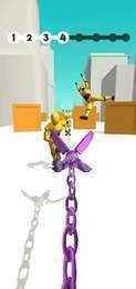 控制飞爪抓住敌人,将其扔出去并击中其他敌人,直到战场上的所有敌人被消灭,并在战斗中解锁更多武器,