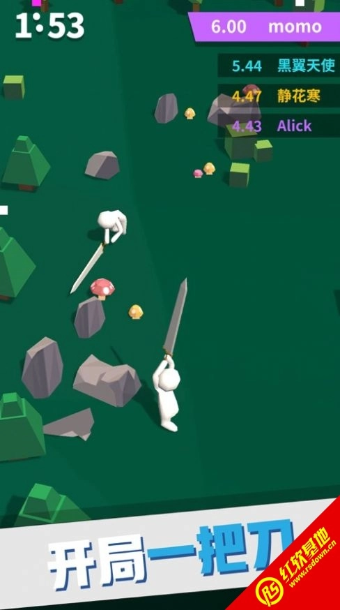 一个非常有趣的休闲益智游戏。在游戏中,可以进行多人比赛。玩家可以通过切割和杀死其他生物来增加大剑的长度。游戏中有时间限制。您可以变大剑被切了多长时间?有许多美丽的皮肤可以解锁大剑。拿起大剑杀死游戏中的四重奏。