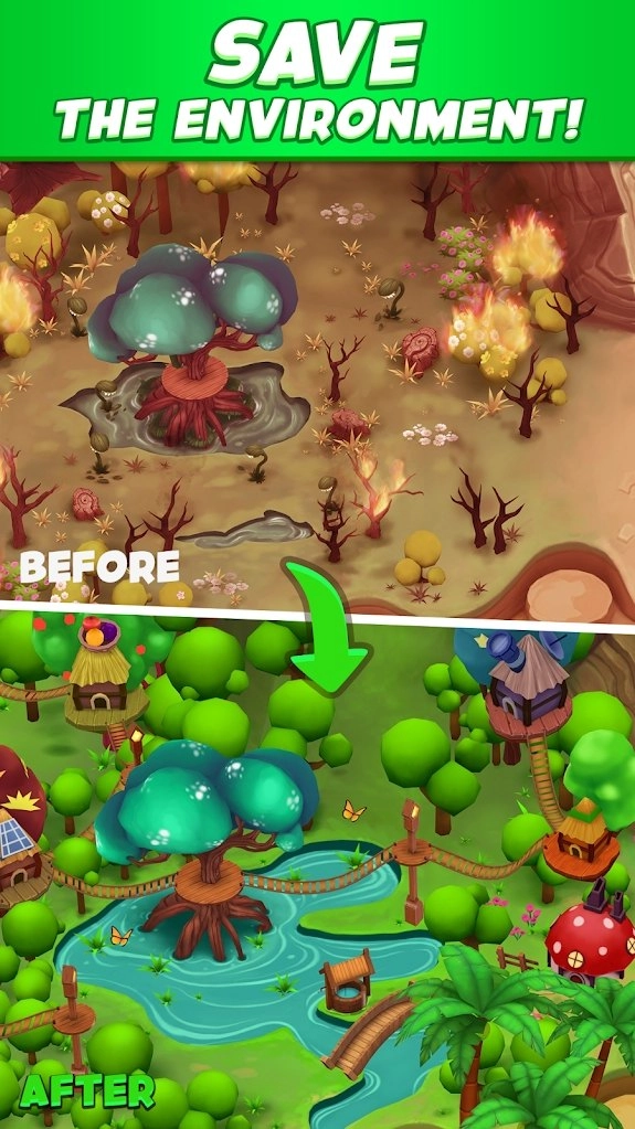 色彩鲜艳的配色和各种可爱的生物,小动物就可以在这里快乐地生活。来帮助他们捍卫自己的家园!