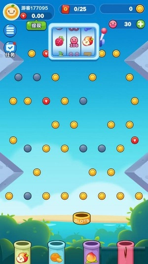 这是一款结合趣味与收益的网赚类小游戏,采用经典的弹球益智玩法。在游戏中你需要操控水果弹球机进行瞄准和发射,享受边玩边赚的乐趣。