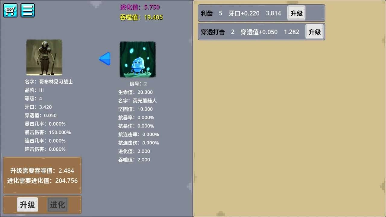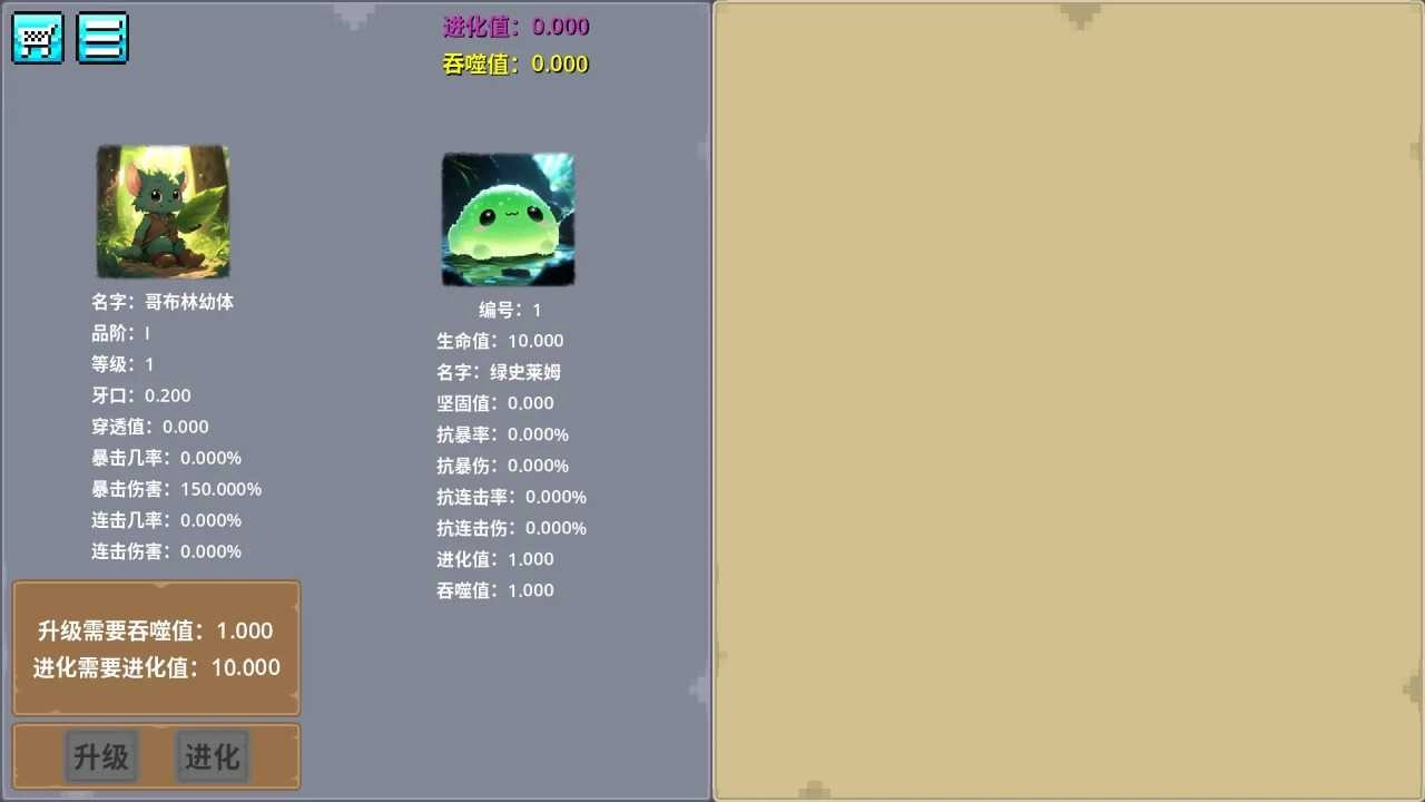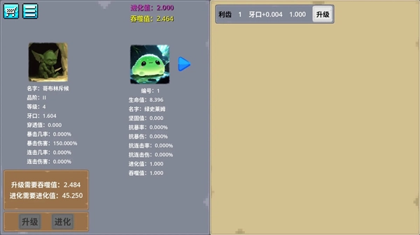 哥布林进化器手机版是一款十分有趣的放置挂机游戏,玩家在游戏里将化身为一只刚出生的哥布林,得通过进化与学习技能来提升自身实力,这需要具备出色的资源分配能力才行!感兴趣的朋友快来体验吧!