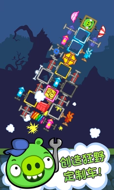 3、游戏中你需要控制角色小猪来进行一系列的闯关。你可以创造狂野的战车,也可以制作新的零部件。