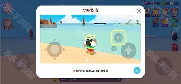 4、根据任务提示来到沙滩角色旁边,我们将获得一个鱼竿;