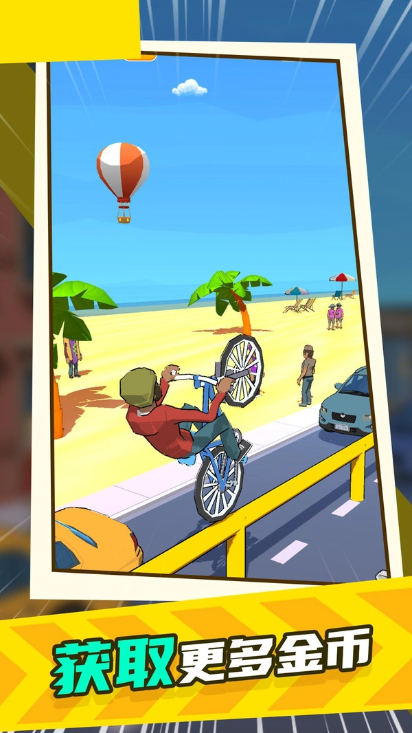随着关卡的逐步提升,玩家可驾驶的自行车种类也在持续增多。