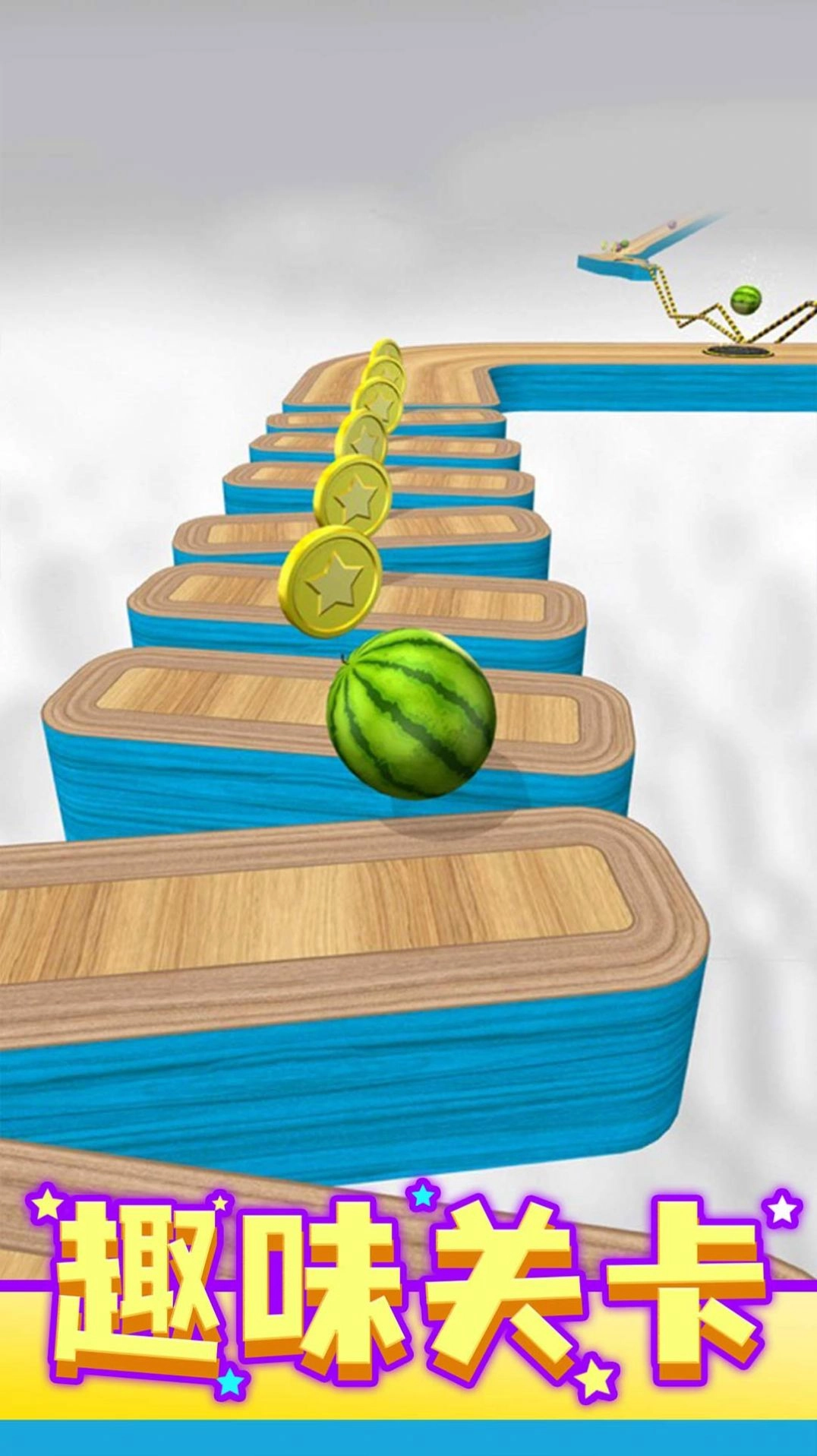 1、初级玩法要求玩家操控滚动的球球调整移动方向,避开弯路与各类障碍物,收集不同道具以提升自身实力。
