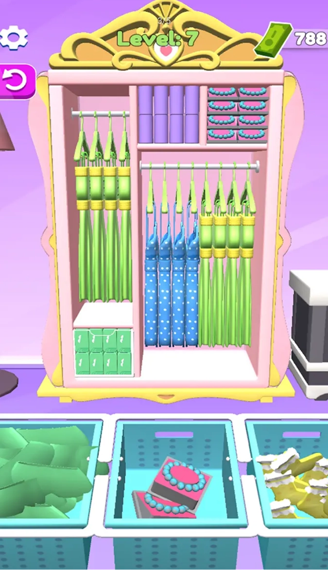 这是一款能让玩家轻松整理和收纳的游戏。它能为你带来满满的乐趣,让你轻松找到更贴合自己的游玩方式,还能带来更多新奇有趣的体验。你可以挑战更多适合自己的模式和玩法,感受不一样的刺激,让体验更加出色。现在就开始用你的内衣裤、包包、鞋子、衣服等物品来填充吧。你准备好回家把衣柜填满了吗?太棒了!继续用你的内衣、包包、鞋子、衣服等物品进行填充。整理并分类你的衣柜,尽情享受游戏的乐趣吧!