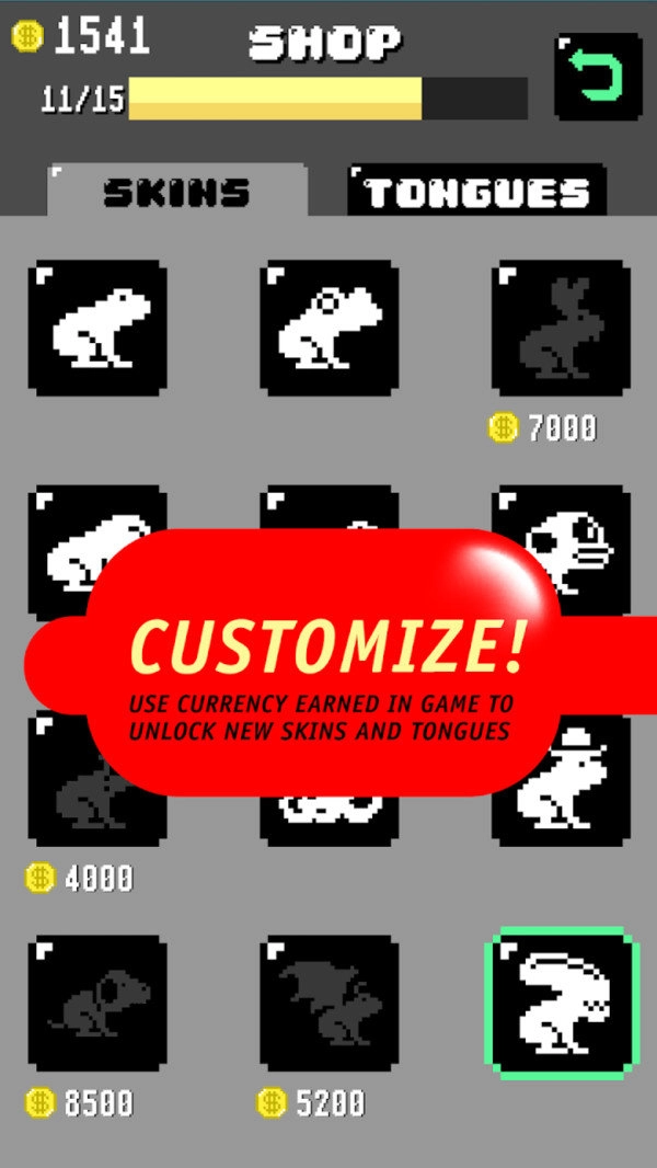 你可以通过选择符合自己游戏风格的服装和舌头,来个性化你的青蛙。