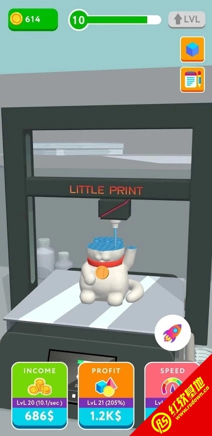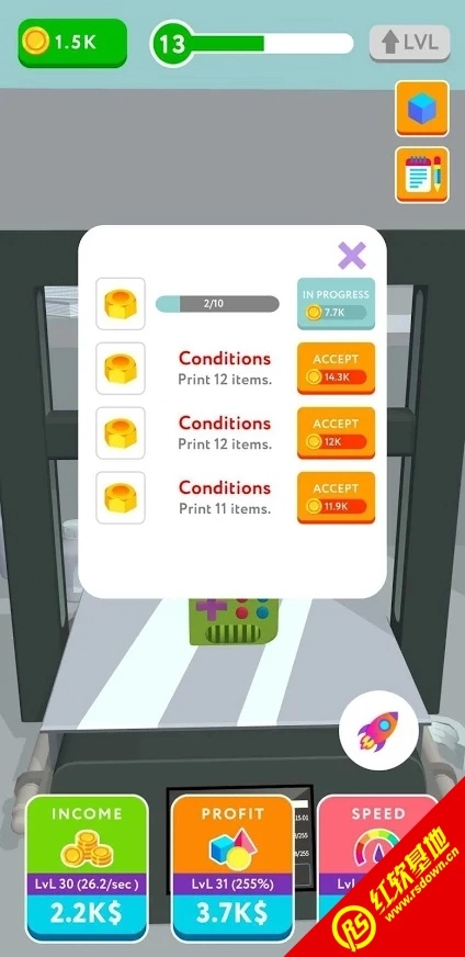 2.通过完成对应的打印任务来获取金币,对打印机进行升级以提升工作效率。
