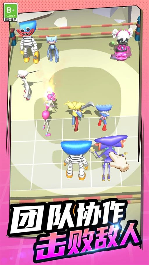 蹦蹦大乱斗这款游戏,看起来是在班班幼儿园的基础上开发的。游戏里的角色都是幼儿园里那种恐怖玩具的样子,玩家可以不断收集这些角色来为自己效力,组建一支强大的团队去战斗。在游戏过程中会遇到不少敌人,大家可以灵活运用角色之间的强大羁绊来战斗,玩起来真的挺不错的。