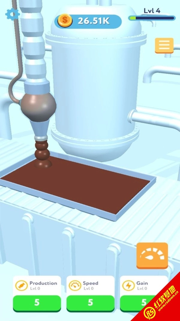 2、你可以运用金币来升级你的机器设备,这样你做出巧克力的数量就更多,而且巧克力也会变得更加的好吃美味