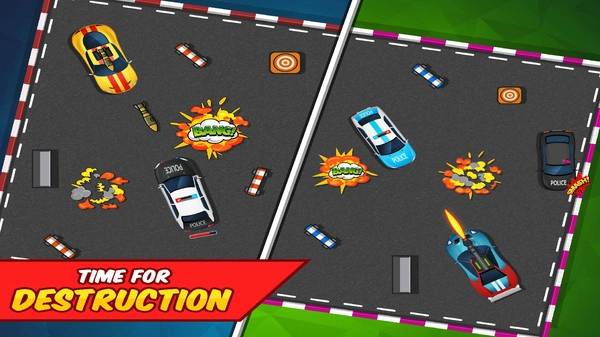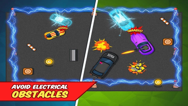 这是一款采用卡通画风的休闲游戏,玩家将以上帝视角操控自己的小汽车,在赛车场内与其他赛车手展开碰撞对决。