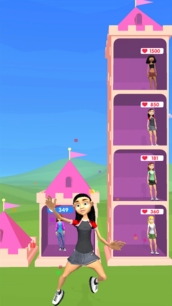游戏的核心目标是抵达最高女神塔的顶端,成为最受大家喜爱的女孩。