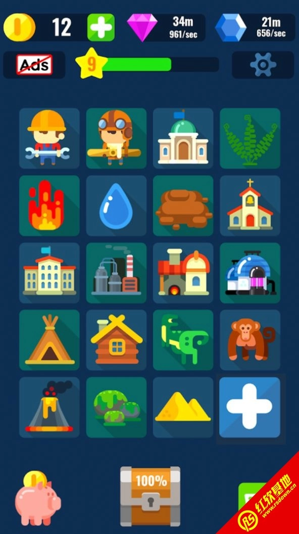 3.各类物品会自动产出金币、钻石及其他奖励,你需要合理利用这些奖励来让地球快速升级。