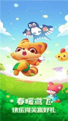 6、当我们在限定的步骤内完成收集后,即可赢得本关游戏,此时会弹出小鸡和小浣熊开心合影的画面。