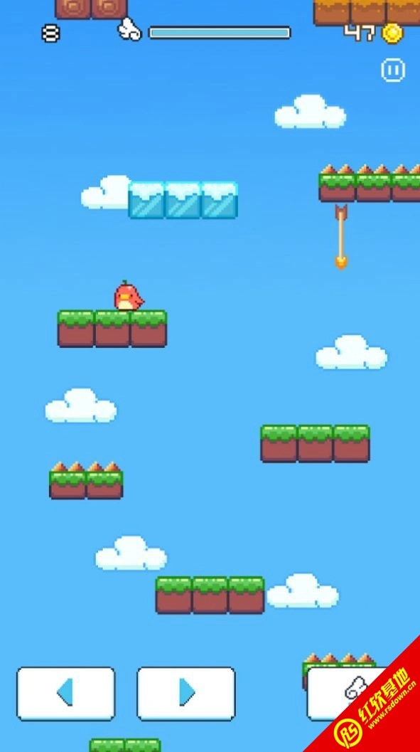 这是一款融入《坠落的愤怒小鸟》元素的创新游戏。玩家要操控自己的“愤怒的小鸟”角色,持续向上跳跃,同时在跳跃途中收集尽量多的金币。这些金币能用来兑换各类道具!并且,随着玩家跳跃的层数不断增加,关卡的节奏也会越来越快,这无疑是对玩家手速的一场挑战!