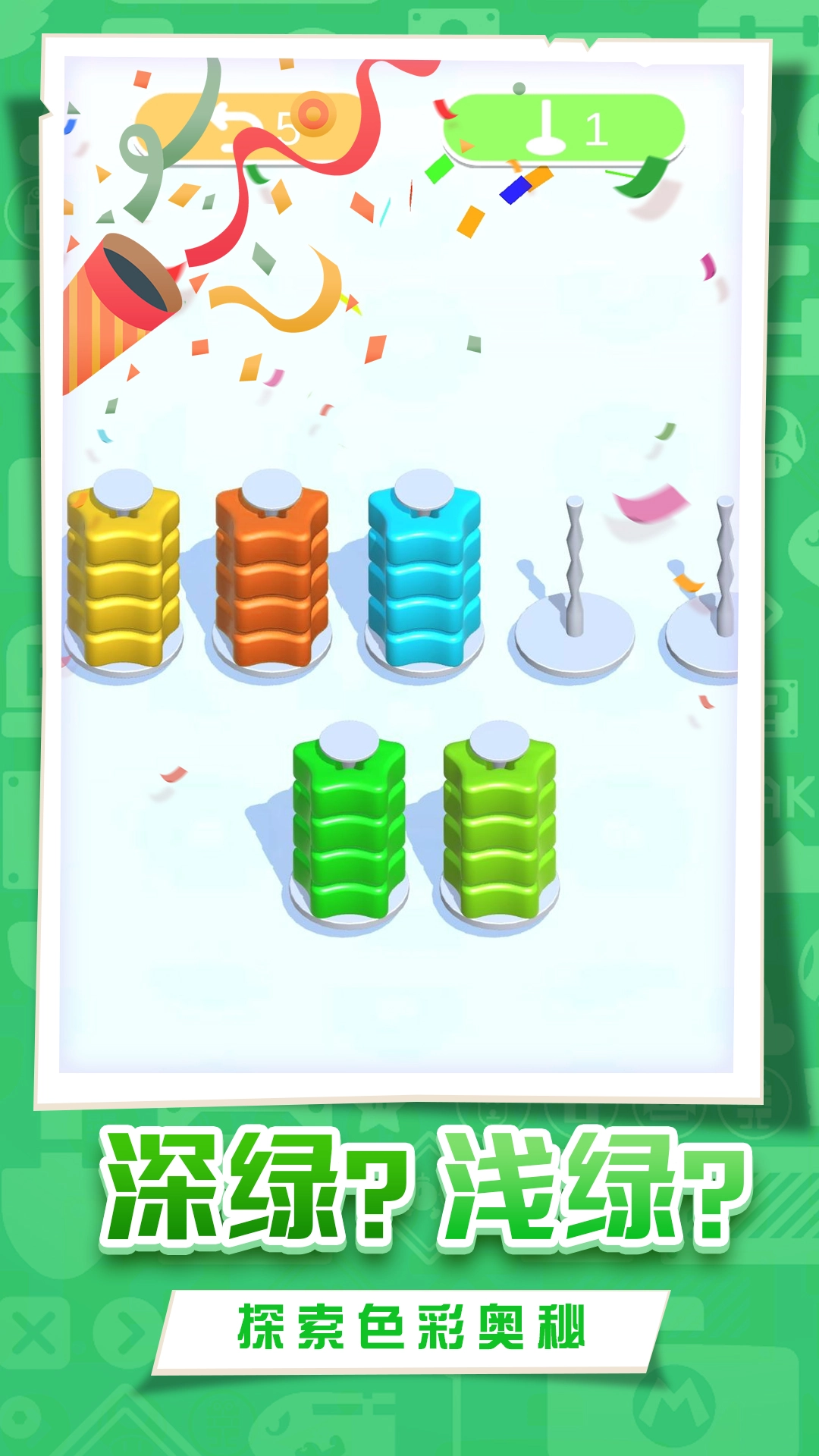 2、要时刻掌握这个技巧,并且多思考一下,通过简单地移动圆圈,当每个基座上都只剩下一种颜色的圆时,游戏就通关了。