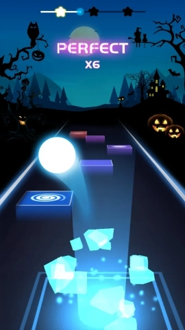 1、按照音乐的节奏来操控小球进行跳跃,精准地落在方块上即可获得分数。