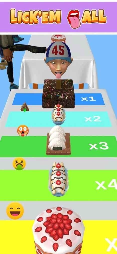 1.在游戏里舔它们。你用舌头舔到的蛋糕越多,蛋糕的侧面就长得越快,这样你吃起来会更轻松。