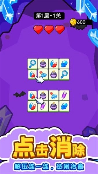 1、迅速把相同的物品连接起来,在规定时间内完成任务以通关。