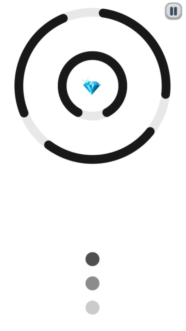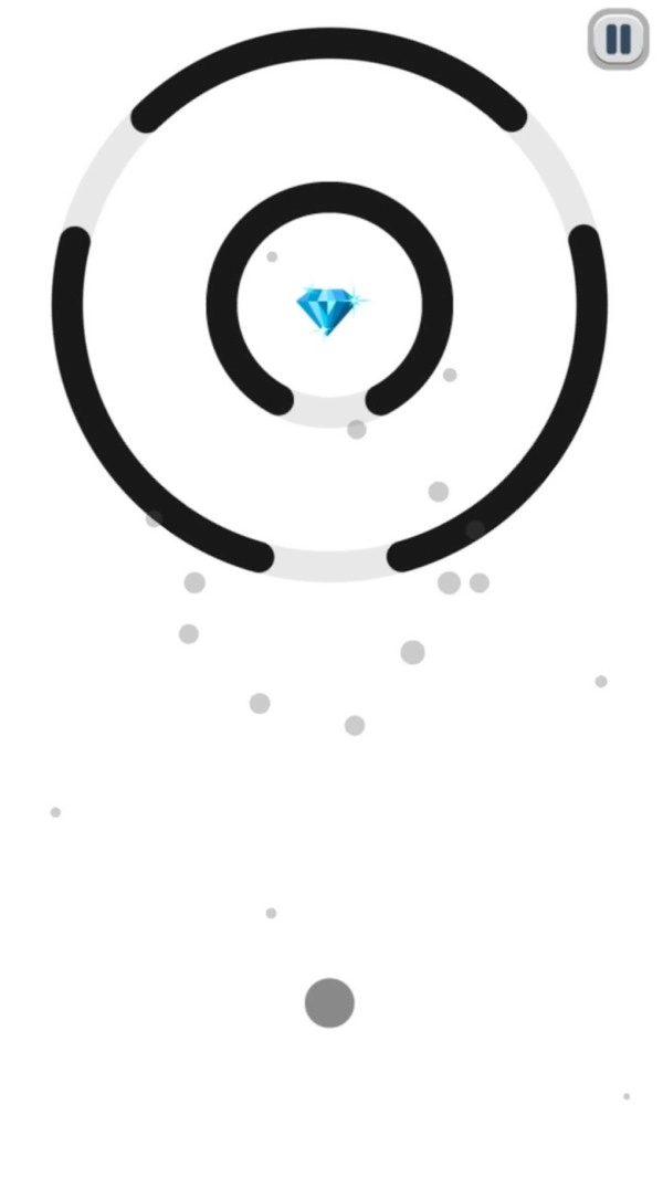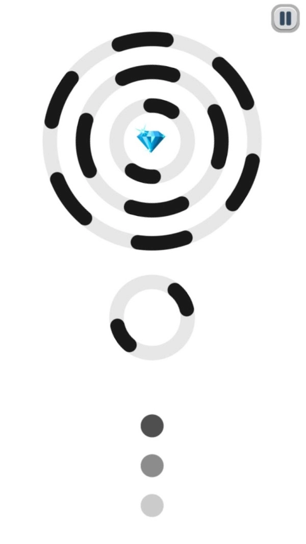 这是一个简单的游戏。只需点按屏幕上的任意位置,即可用石球击中多层圆圈中的钻石。