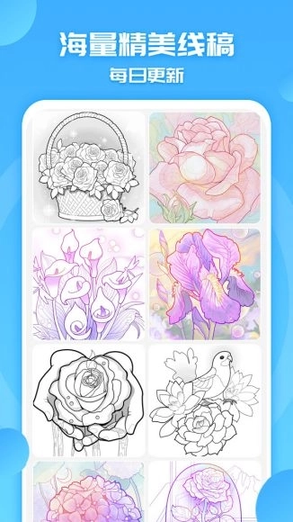 《一起来涂色》是一款极具治愈效果的涂色游戏,适用场景十分丰富。它既能在日常生活中帮助人们消磨时光,也能作为孩子的早教工具——助力孩子辨别色彩、学习色彩知识,还能培养他们的绘画能力。这里汇聚了各式各样的绘画作品,用户可以自由添加色彩,按照自己的心意尽情涂色。