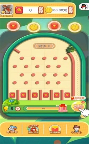 2、玩家持续游玩就能获取所有红包,弹珠发射需要消耗体力,点击发射按钮即可把弹珠射入场地;