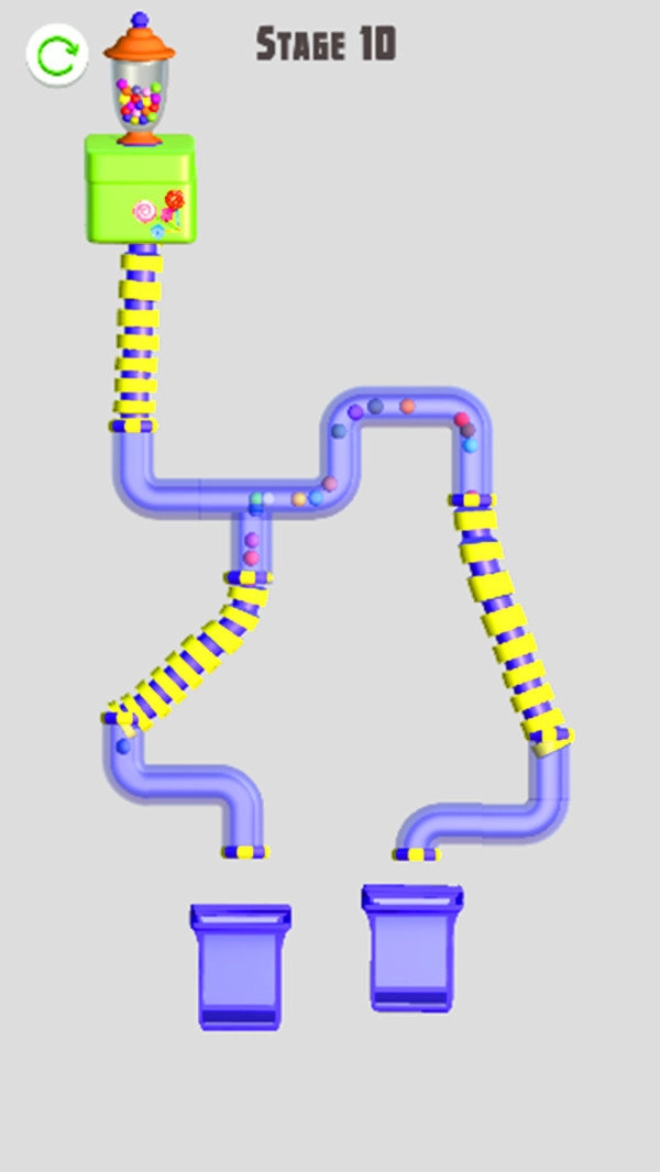 玩家需要在游戏里通过合理连接管道,让彩色小球顺利进入对应的容器中。