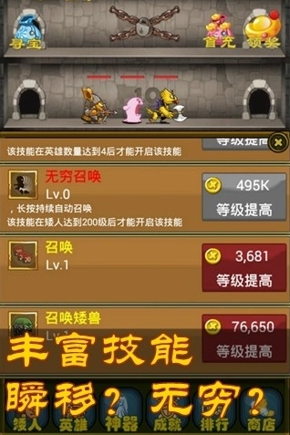 3、游戏里设有长剑矮人、弓箭矮人、法师矮人等多种职业小矮人,每个都有独特之处。