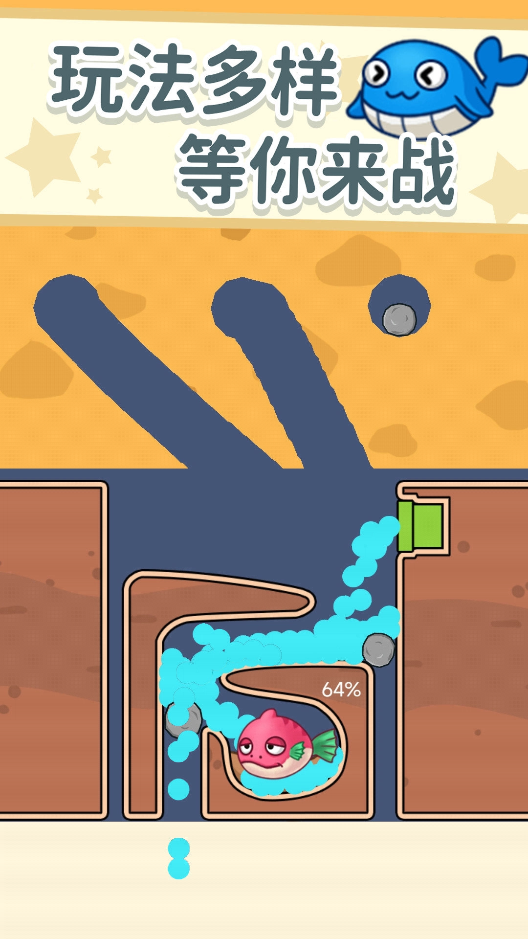 难度不算特别大,只要掌握好拔针的时机,就能让小鱼安全逃脱。