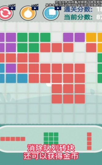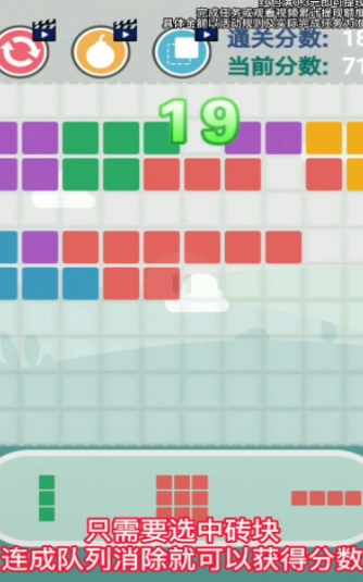 2、充分发挥想象力,将不同颜色的砖块进行组合搭配,通过完成任务来提升积分。
