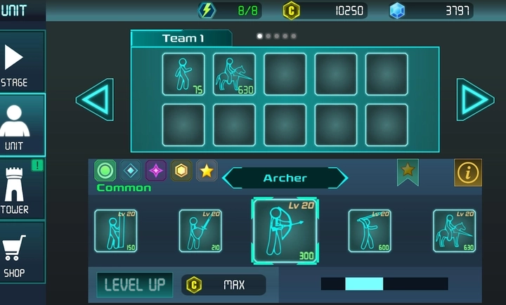 1.把经典的火柴人形象和塔防游戏融合起来,创造出棍人单位去守护防御塔。