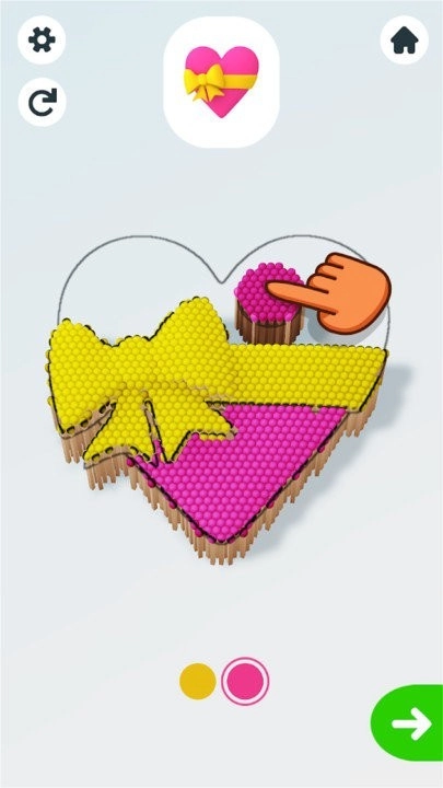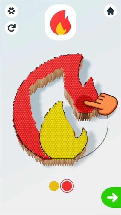 1、火柴艺术会为玩家提供许多顶部颜色各异的小火柴,玩家可以用这些火柴自由搭建。