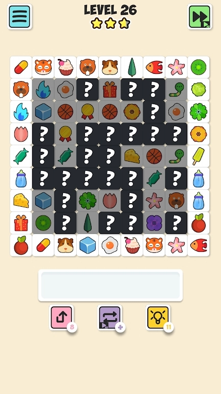 瓷砖配对连接游戏手机版(TilePair)的核心玩法是找到相同图案的瓷砖进行配对消除,以此达成游戏目标。这款游戏规则简单、操作便捷、画面精致,适合不同年龄段的玩家用来放松身心。它最突出的优势在于,既能锻炼你的观察力与反应速度,又能帮助你舒缓大脑、缓解压力。