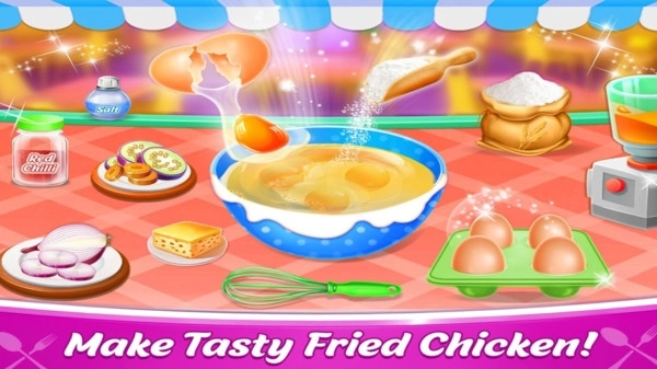 《油炸鸡快餐烹饪》是一款模拟经营游戏,玩家将化身快餐店老板,负责制作并售卖各类炸鸡与快餐美食。游戏中,玩家需依据顾客的订单,挑选适配的食材和调料,运用不同的烹饪工具与设备,烹制出可口的油炸食品。游戏设有多个关卡和挑战任务,玩家要在规定时间内完成订单,以此提升烹饪技能和店铺等级,吸引更多顾客光临,进而增强餐厅的盈利水平。