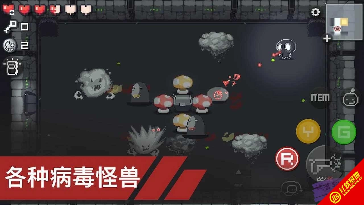 1:在游戏中,玩家将成为病毒猎人,前往地牢以消除所有可怕的病毒怪物,并继续探索地牢。