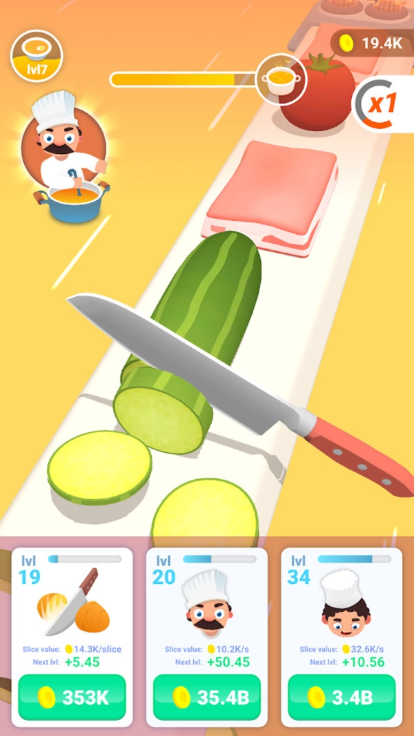 2.游戏音效极为逼真,游戏水平真实还原,菜刀越是锋利,切割的速度就越快;
