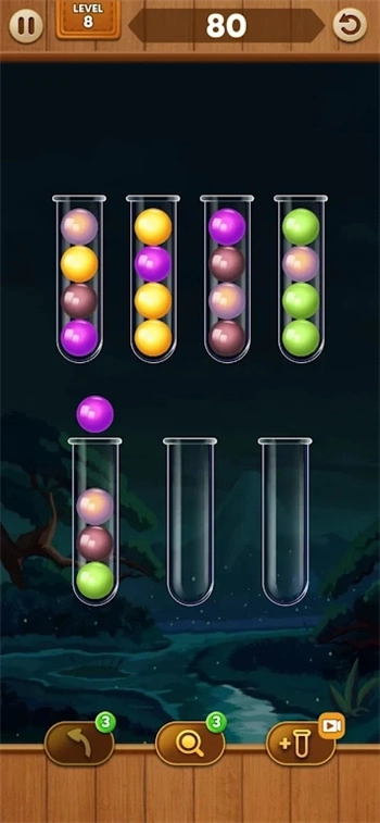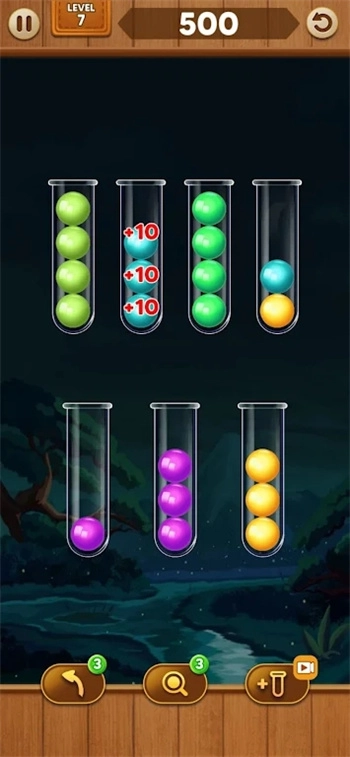1、在各种小瓶里完成调配任务,把试管中的彩球调配装好,让你尽情体验各种玩法。