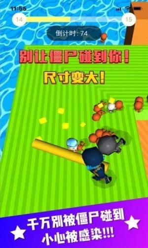 需要注意的是上面还有一些僵尸得注意避让,否则会被感染。游戏还是比较有挑战性的,前后夹击,获胜还有机会领取红包哦。