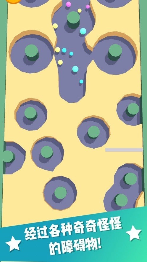 有很多的障碍物也会出现,你要挖出隧道,让小球顺利的滚到最底端。