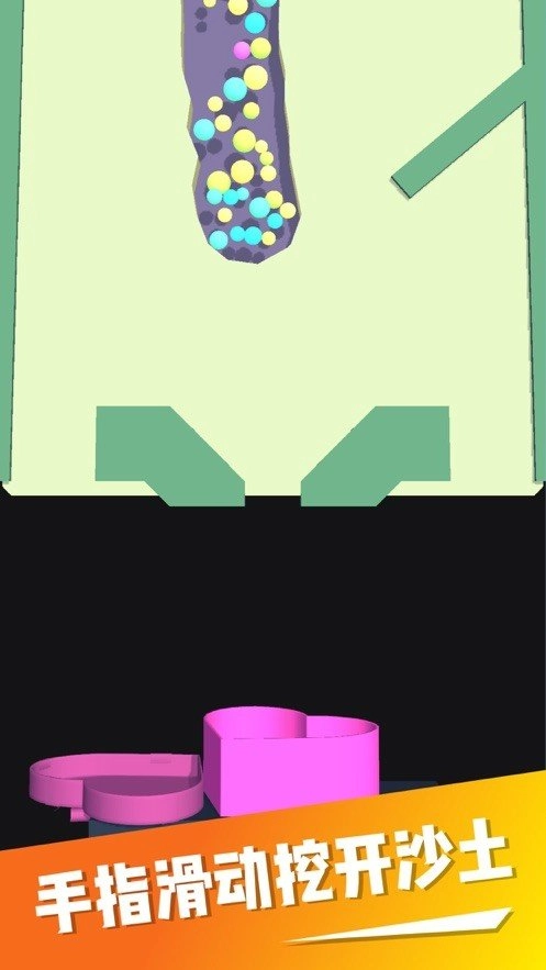 游戏的操作非常简单,只是需要玩家在各种颜色的球球落下之前,将地上所有的泥沙全都扒拉开,不要让这些泥沙成为球球前进的阻碍,不同的障碍物玩家需要依靠不同的工具才能将它们全都清理掉,所以,玩家需要借助一定的技巧才能在这个看似简单,实则困难的关卡中获得胜利。