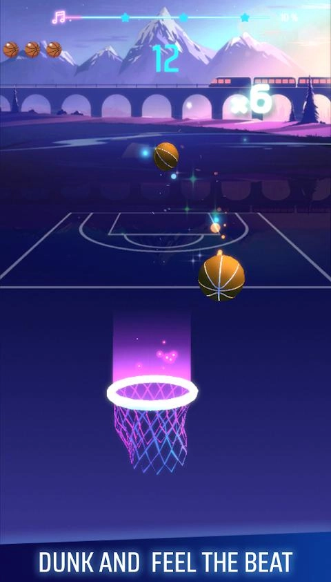 这是一款将体育运动与音乐节奏完美融合的游戏。在游戏里,玩家能充分领略音乐的魅力,确切地说,是电音的独特魔力。随着音乐的节拍律动,同时完成投篮动作,体验非常棒。