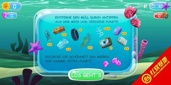 1.隐藏物品类游戏《拯救我们的海洋》的玩法是:在90秒内从海洋里收集尽可能多的垃圾,以此获取积分。