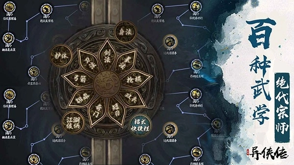 1、武学系统涵盖武功(普通攻击)、内功(技能)、护体、身法(移动速度)以及辅助技能(范围伤害与弱控制类技能)