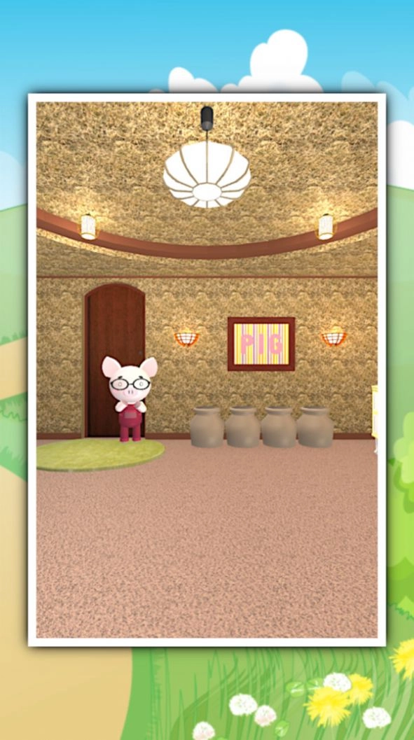 2.玩家得跟着猪去检查房屋,找出可疑之处,运用道具解开谜题,进而想办法逃出去。